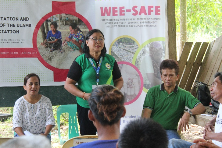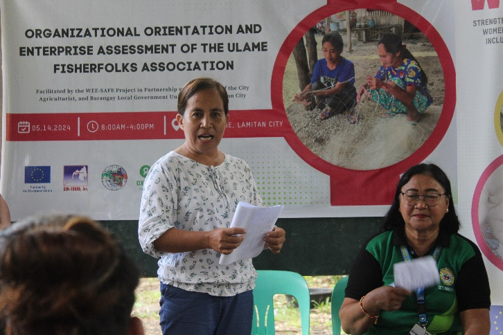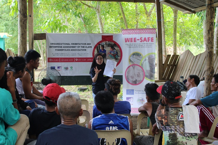 The Organizational Orientation and Enterprise Assessment of the Ulame Fisherfolk Associations was conducted on May 14, 2024, at Sitio Subah, Barangay Ulame, Lamitan City, with 25 participants from the Ulame Fisherfolk Association, representatives from the City Agriculture Office, the Barangay Local Government Unit, and the WEE-SAFE Project. The activity aimed to strengthen the association’s organizational capacity by informing members about the importance of registration and understanding their constitution and by-laws, clarifying the duties and responsibilities of officers and members, and ensuring awareness of registration procedures to improve access to institutional support. Discussions focused on organizational governance, collection of dues, and enterprise operations such as catch-and-sell production, post-harvest handling, marketing, and inventory management, alongside expressions of support from local leaders. A practical output of the session included the costing and planning of fishing gear materials amounting to ₱47,880 for 28 members, guided by facilitators. The activity enhanced members’ understanding of accountability and association management, reinforced the importance of formal registration, and strengthened collaboration with local stakeholders, with participants expressing strong appreciation for the initiative as a meaningful step toward improving their livelihoods and organizational development.