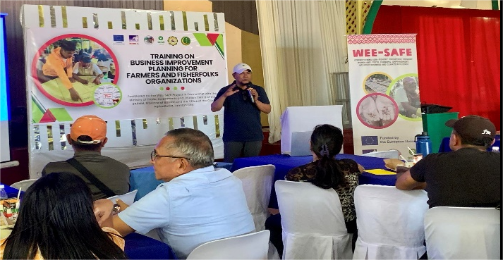 The Training on Business Improvement Planning for Farmers and Fisherfolks Organizations was conducted on March 5–7, 2024, at Nalamar Restaurant and Services in Lamitan City, bringing together 37 participants from cooperatives, associations, barangays, the WEE-SAFE Project team, and partner stakeholders, including the Ministry of Trade, Investments and Tourism and the Office of the City Agriculturist of Lamitan City. The training aimed to strengthen participants’ competencies in business management by equipping them with knowledge and skills in developing Business Model Canvases, business improvement plans, and financial and marketing strategies tailored to their organizations. Led by Mr. Asriff Tindick, the Senior Trade and Industry Development Specialist of the Ministry of Trade, Investments, and Tourism in Basilan, discussions covered entrepreneurial and marketing mindsets, niche marketing, costing and pricing, and the nine building blocks of the Business Model Canvas, followed by hands-on workshops where participants developed their own business models and improvement plans with guidance from facilitators. Over the three days, participants gained practical skills in strategic planning, financial preparation, and collaborative learning, resulting in concrete outputs such as draft Business Model Canvases, Business Improvement Plans, and financial plans aligned with their organizational goals. The activity successfully enhanced participants’ capacity to manage and grow their enterprises, empowering them with essential tools to strengthen the sustainability and effectiveness of their farmers’ and fisherfolk’s organizations.