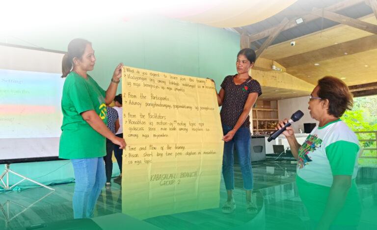 The training is facilitated by Ms. Alsie Sappayani and Ms. Darlyn, focusing on leadership development and strengthening the capacity of KMFI center leaders in their respective areas.