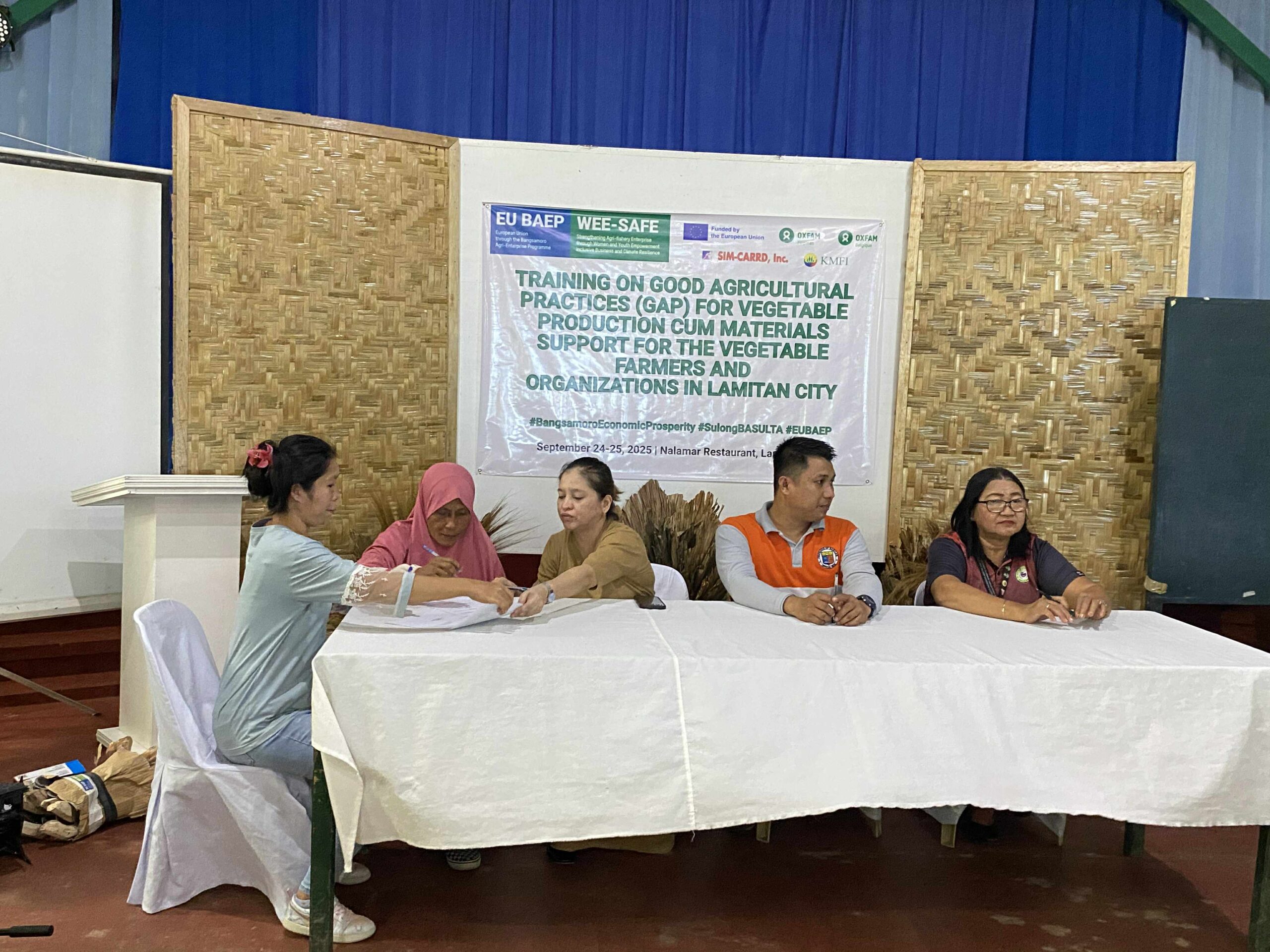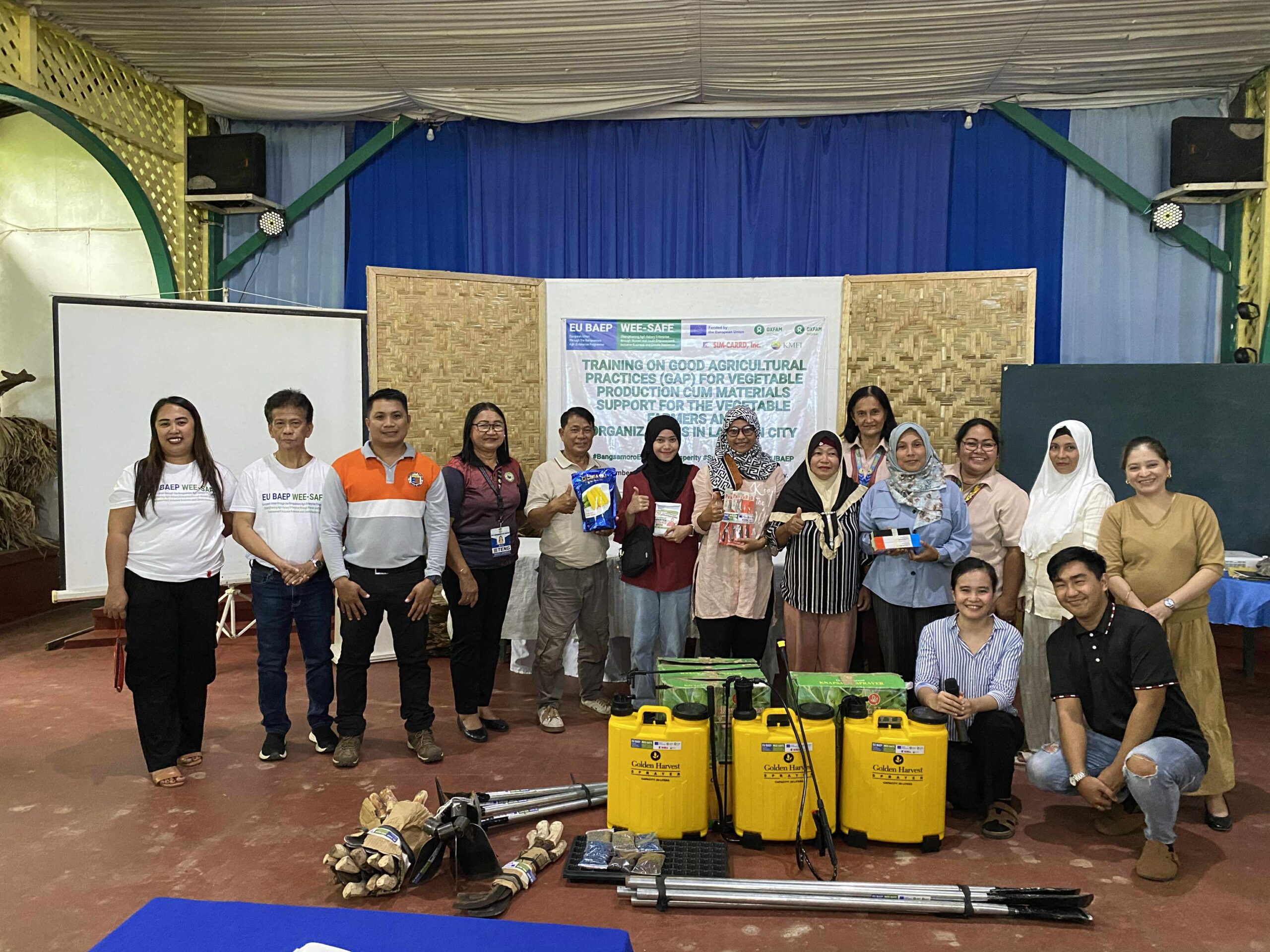 The Training on Good Agricultural Practices (GAP) for Vegetable Production was conducted on September 24–25, 2025, at Nalamar Restaurant in Lamitan City, organized by the WEE-SAFE Project in partnership with the Office of the Provincial Agriculturist, Basilan (OPAg), and the City Agriculture Office. The two-day activity gathered eight farmer associations to strengthen their knowledge and skills in sustainable vegetable production, focusing on planning, cost management, crop selection, soil preparation, fertility management, irrigation, pest and disease control, and post-harvest handling. Participants learned practical techniques such as organic fertilizer application, crop rotation, seed sterilization, hand pollination, and integrated pest management, while actively discussing field challenges and solutions with resource speakers. The training also featured the distribution of EU-funded farm tools and the signing of a Memorandum of Understanding to ensure proper utilization and accountability of support provided. The activity concluded with participants expressing appreciation for the new knowledge, tools, and strengthened partnerships, with follow-up monitoring planned through regular coordination and site visits. Overall, the training enhanced farmers’ technical capacity and collaboration with local partners, supporting the development of a more sustainable and market-responsive vegetable sector in Lamitan and Basilan.
